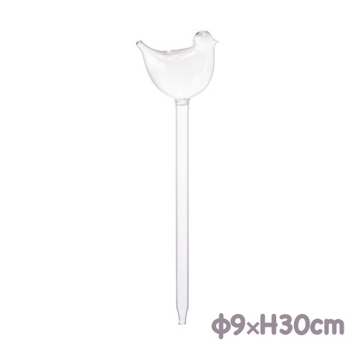 鉢植えの植物に水を与える給水器です。水をたっぷり与えた直後の植木鉢に満水状態にして挿しておくと、その後2~3日間、水持ちします。ガラス製。こちらはMサイズです。高さ26cmのSサイズもございます。
