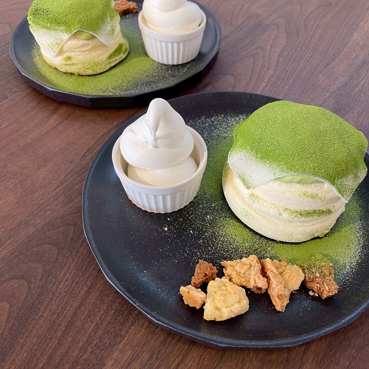 パンケーキの優しい甘みと京都宇治抹茶の上品なほろ苦さをお楽しみください😌🍵