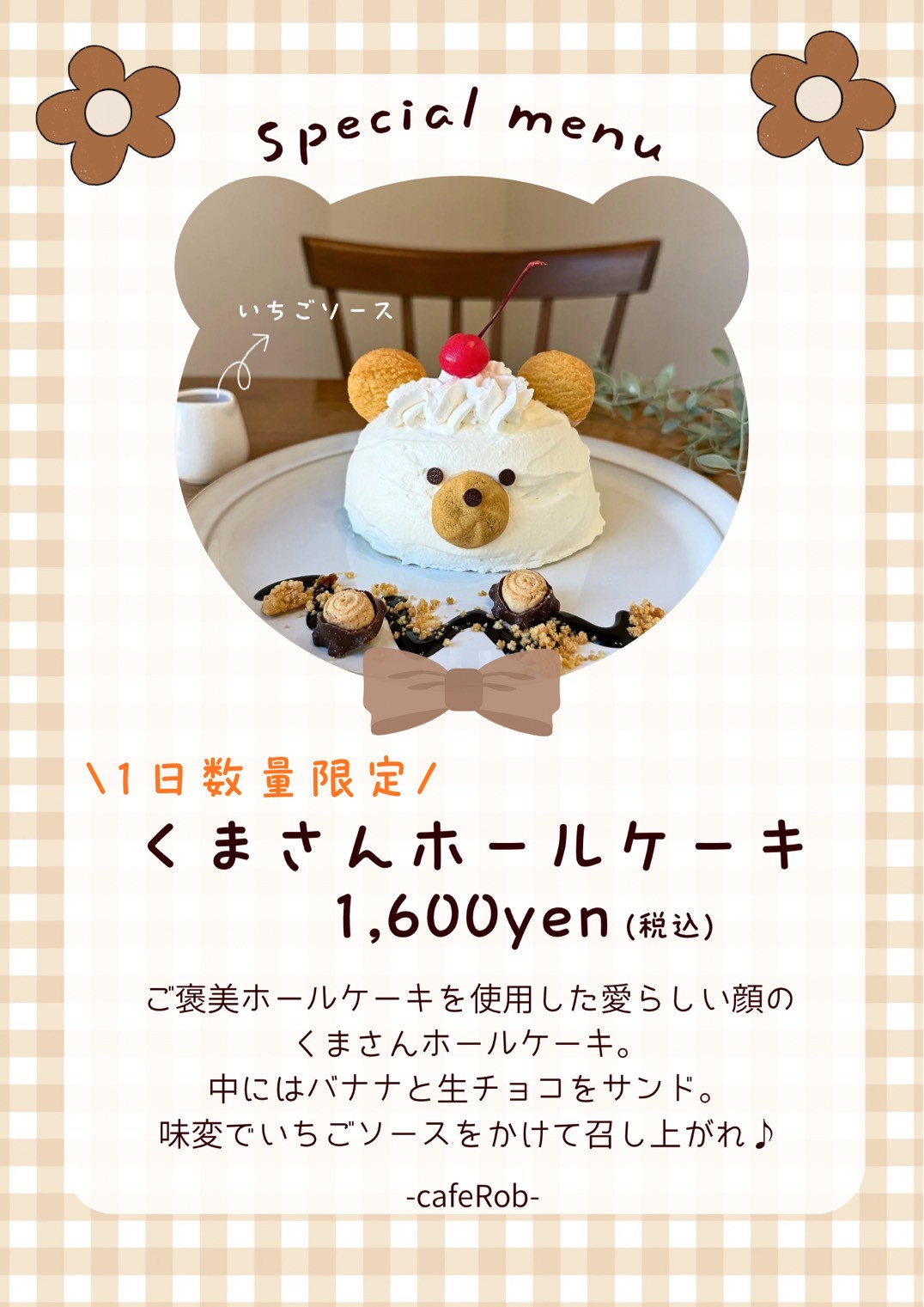 2025.12.261/5(月)~ 1日数量限定!くまさんホールケーキ🐻✨
